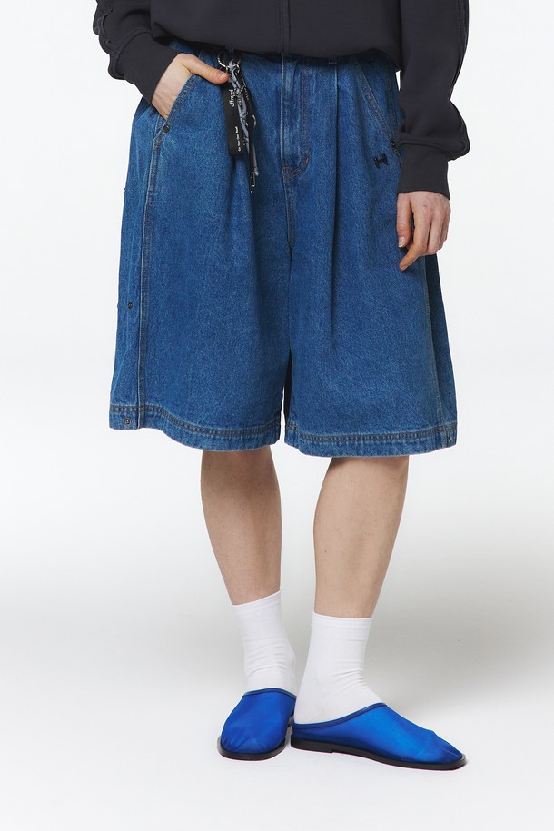 유니 데님 스냅 버뮤다 팬츠 (블루)_5LD2623