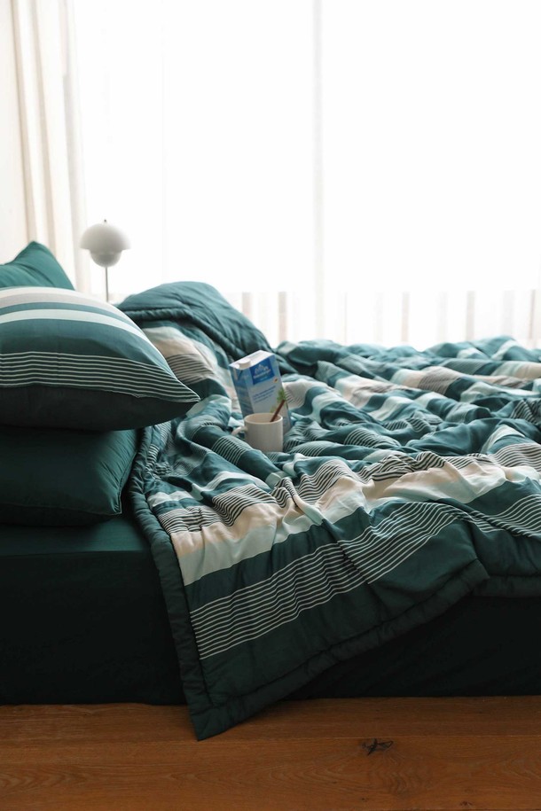 [오리고] 부드러운 모달 여름 간절기 슬림 차렵이불 세트(이불+베개커버2) Q 필더포레스트