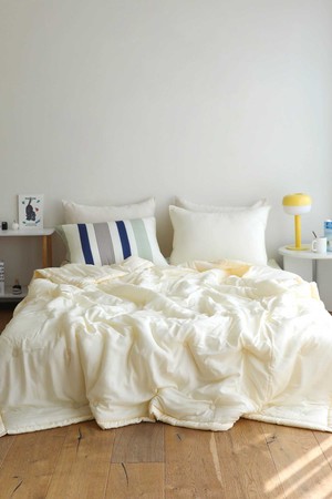 [오리고] 부드러운 모달 여름 간절기 슬림 차렵이불 세트(이불+베개커버2) Q 솔리드 아이보리