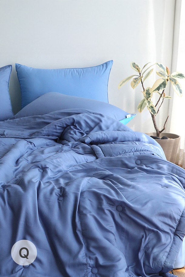 [오리고] 부드러운 모달 여름 간절기 슬림 차렵이불 세트(이불+베개커버2) Q 솔리드 블루
