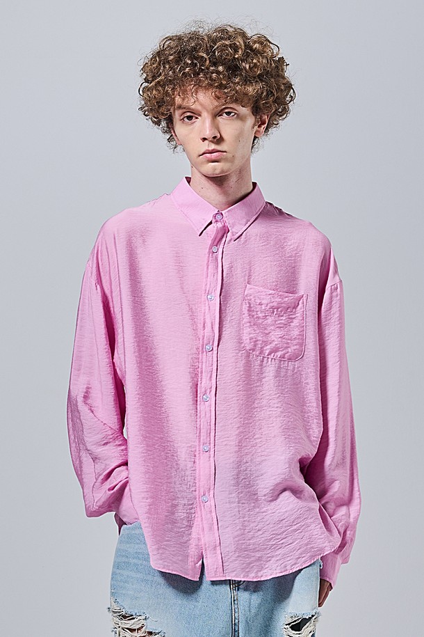 크링클 오버핏 써머셔츠 (핑크)