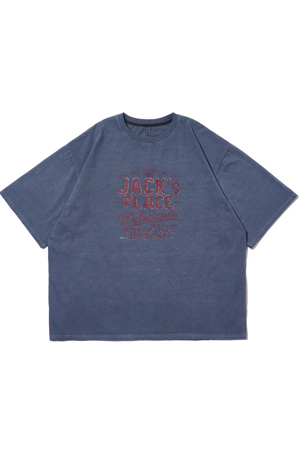 플레이스 레터링 피그먼트 오버 반팔티 (네이비)