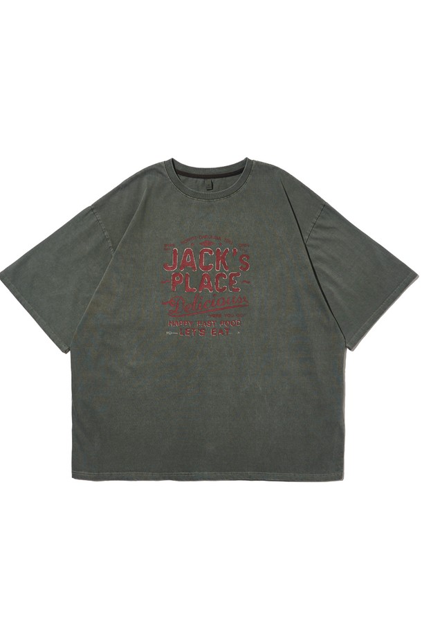 플레이스 레터링 피그먼트 오버 반팔티 (카키)