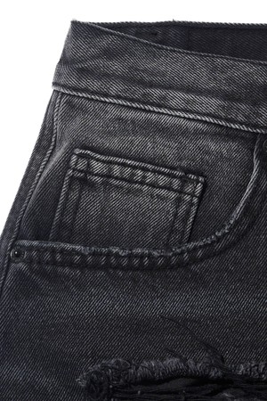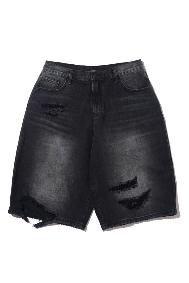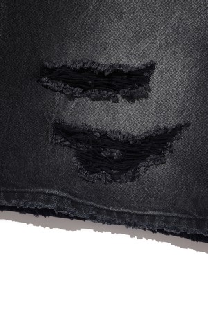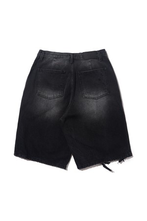 디스트로이드 빈티지워싱 데님반바지 (흑청)