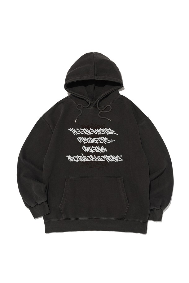 그래피티 레터링 피그먼트 후드티셔츠 (차콜)