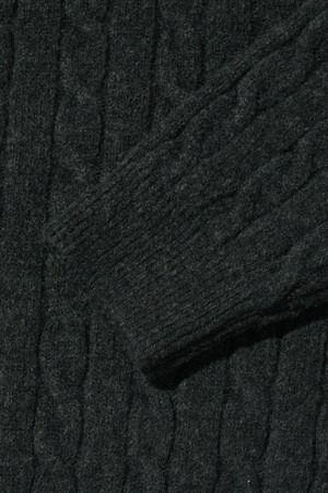 오버핏 헨리넥 꽈배기 니트 (블랙)