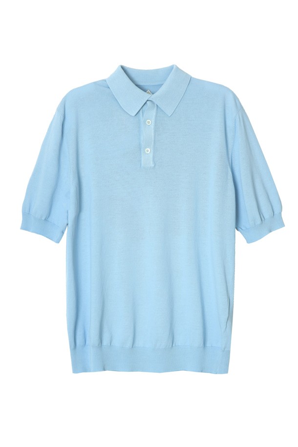 면 폴로넥 반팔 니트 스카이블루 POBBKT53A
