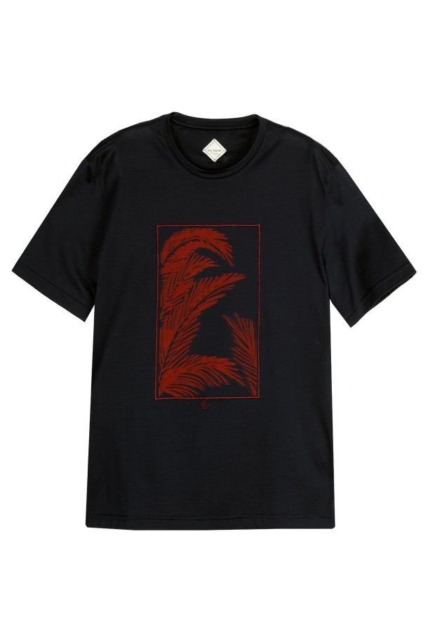 면 자수 포인트 티셔츠 네이비 POBCTT98A