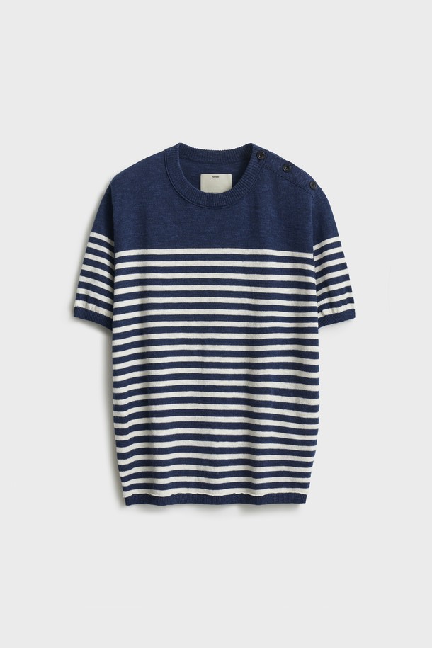 Short Sleeve Shoulder Button Knit_Navy Stripe