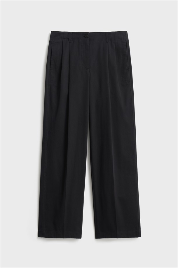 Cotton Two Pleated Wide Pants_Black