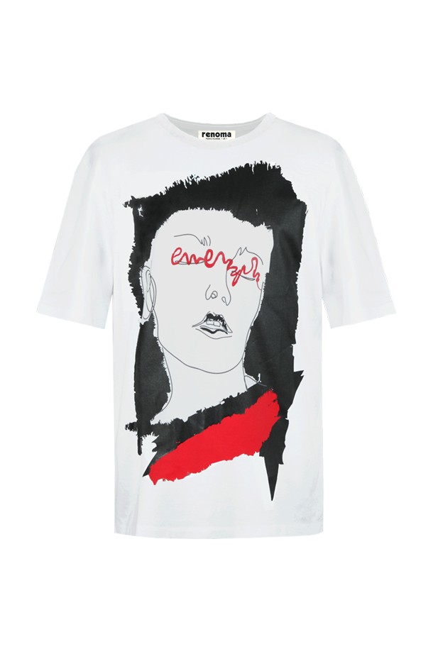 면 페이스 프린트 티셔츠 화이트 RONMTT51A