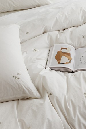 [소프라움앤] 에이프릴 플라워 자수 60수 고밀도 바이오워싱 베개커버 50X70
