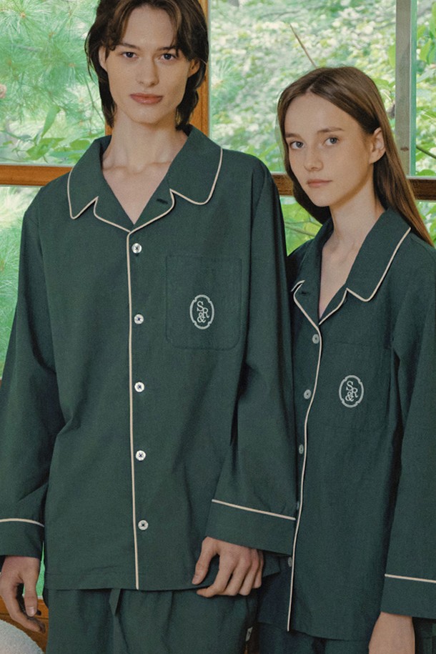 [m] 원마일 워싱 긴팔 파자마 세트 딥그린