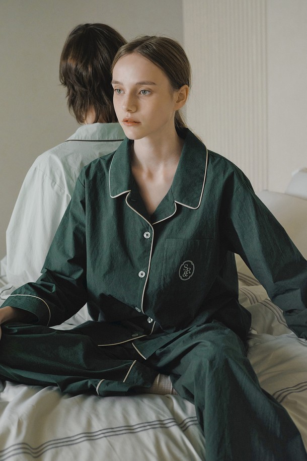 [w] 원마일 워싱 긴팔 파자마 세트 딥그린