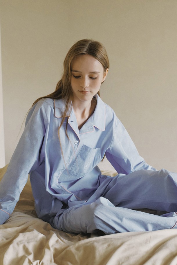 [w] 원마일 워싱 긴팔 파자마 세트 블루