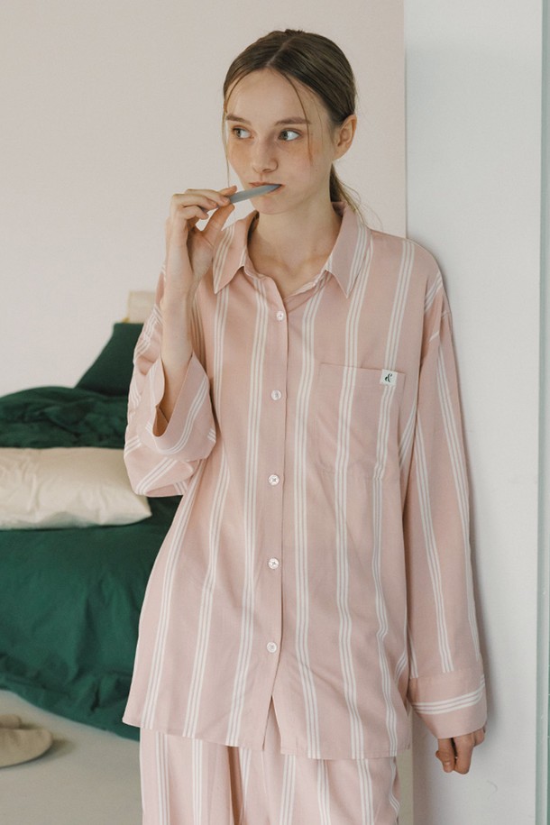 [w] 실크터치 스트라이프 긴팔 파자마 세트 핑크