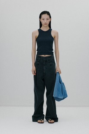 뉴 하이라이즈 와이드레그 팬츠 - BLACK