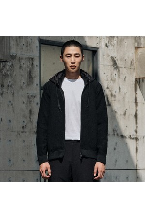 [RNW] 나일론 후드 니트 집업 블랙 (세미오버핏)_SWIVA04NSB