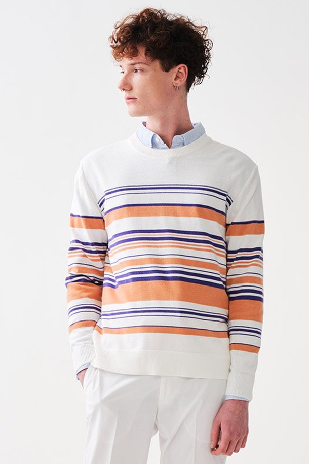 멀티 스트라이프 니트_오렌지 (베이직핏)_SKTUA07NTO