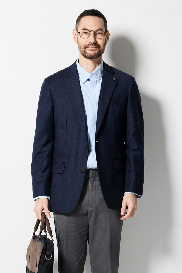 엑스트라파인 울 69% 체크 수트 자켓_네이비 (컴포트핏)_SSJTD63NCN