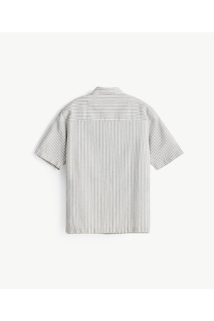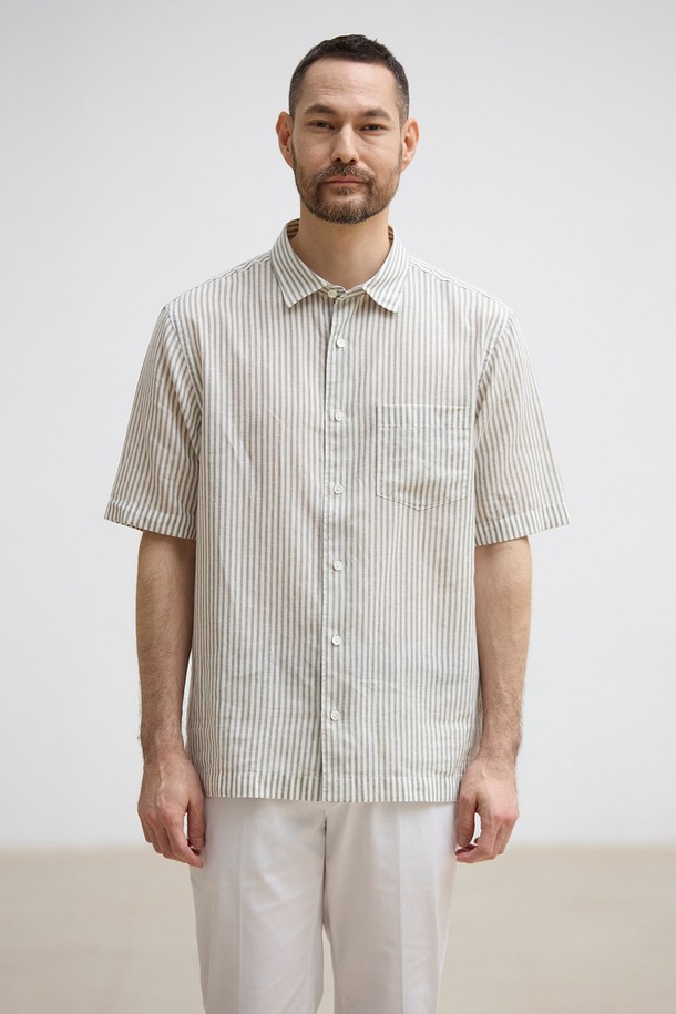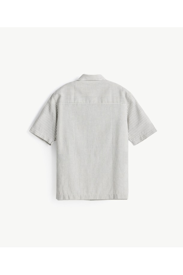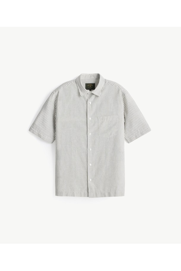 [자개단추] 소프트 린넨 반소매 셔츠_스트라이프 그레이 (레귤러핏)_JDSXZ55CTG