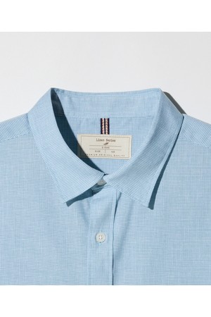 잔체크 린넨 혼방 반팔 셔츠_민트 (이지핏)_DDSXB03ECM