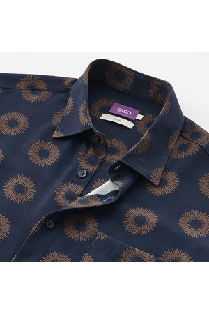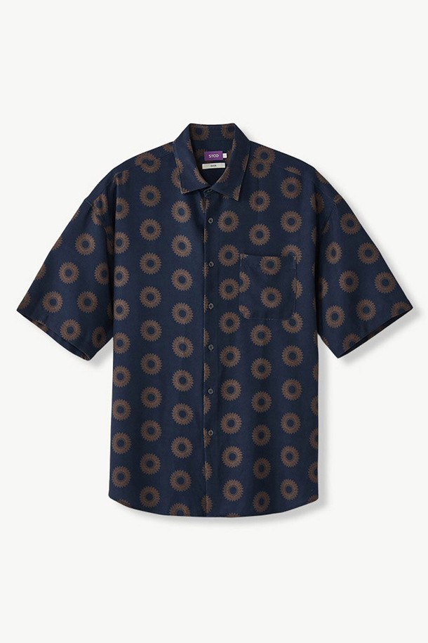사방 스판 프린트 셔츠 네이비 (오버핏)_SDSVB72OGN