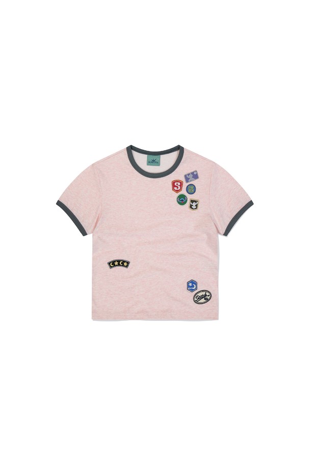 <STITCH> W Wappen Ringer Tee Heather Pink