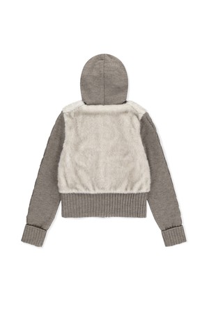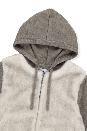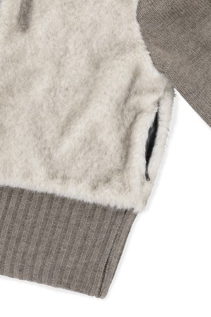 W Faux Fur Knit Zip Jacket Oatmeal