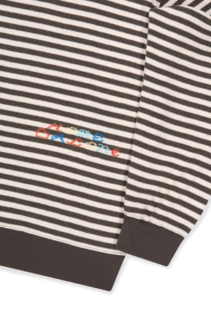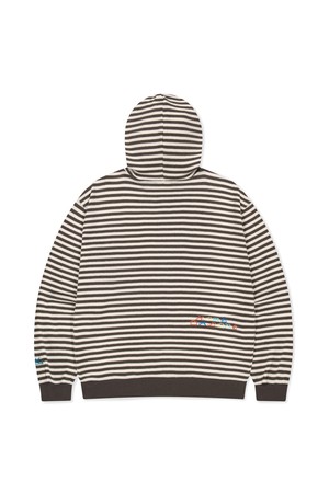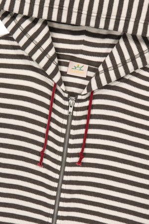 [HOME ALONe] Striped Waffle Zip Up Hoodie Brown