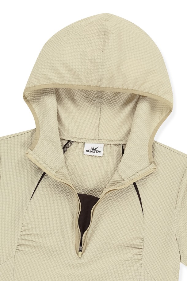 W Soar Half Zip Hooded Top Beige