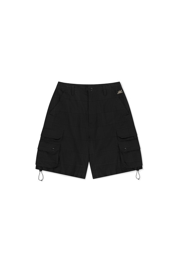 Seersucker Patchwork Cargo Shorts Black