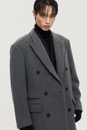 차콜그레이 오버핏 캐시미어 더블브레스트 코트 (TNCO4F103CG)