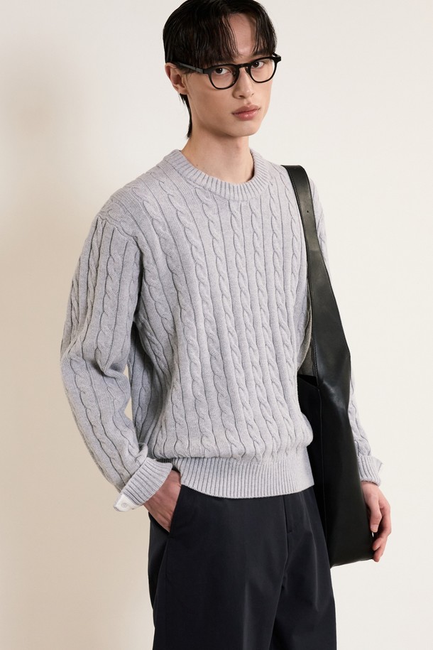 Cable Long Sleeves Knit Top (Gray) TNSW5E102G2