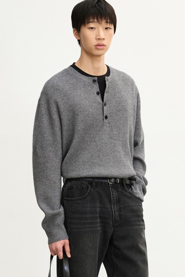 Oversize Rib Henley Neck Knit (Grey) TNSW5F109G2