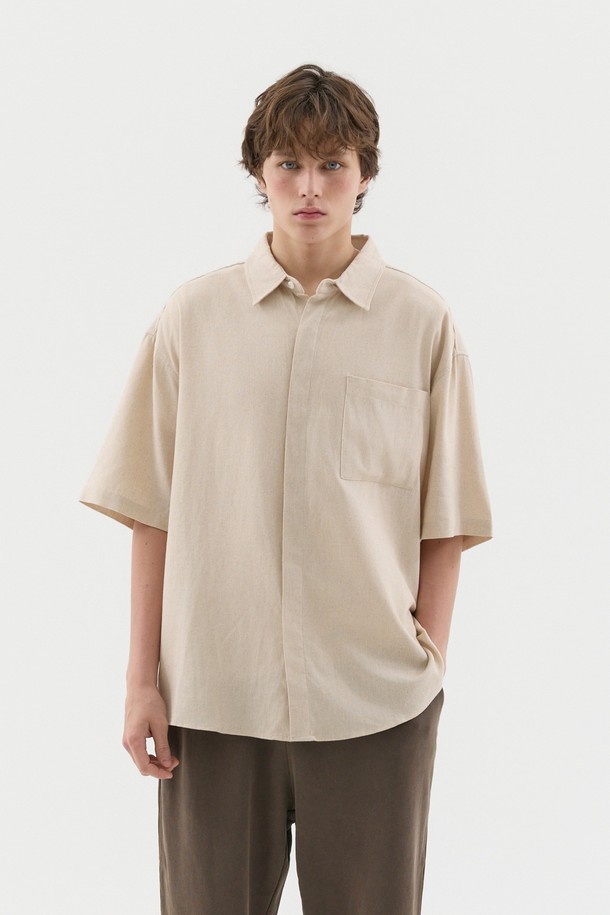 히든버튼 오버핏 린넨 반소매 셔츠 6컬러