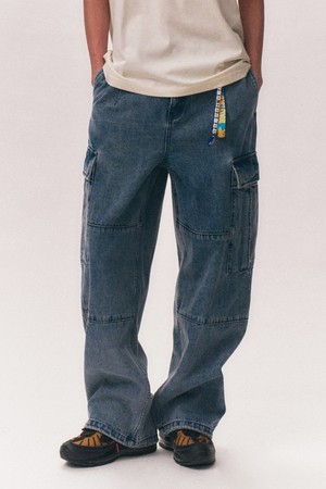 남녀공용 와이드핏 사이드 밴딩 카고 데님 팬츠[INDIGO](UB3DP4A_04)