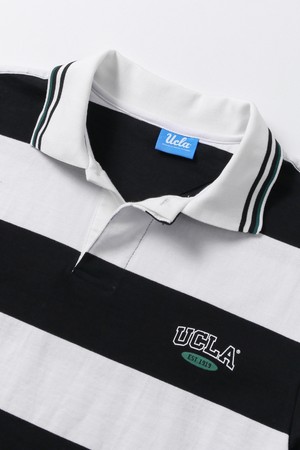 남녀공용 럭비 스트라이프 반팔 칼라 티셔츠[WHITE](UB6ST89_31)