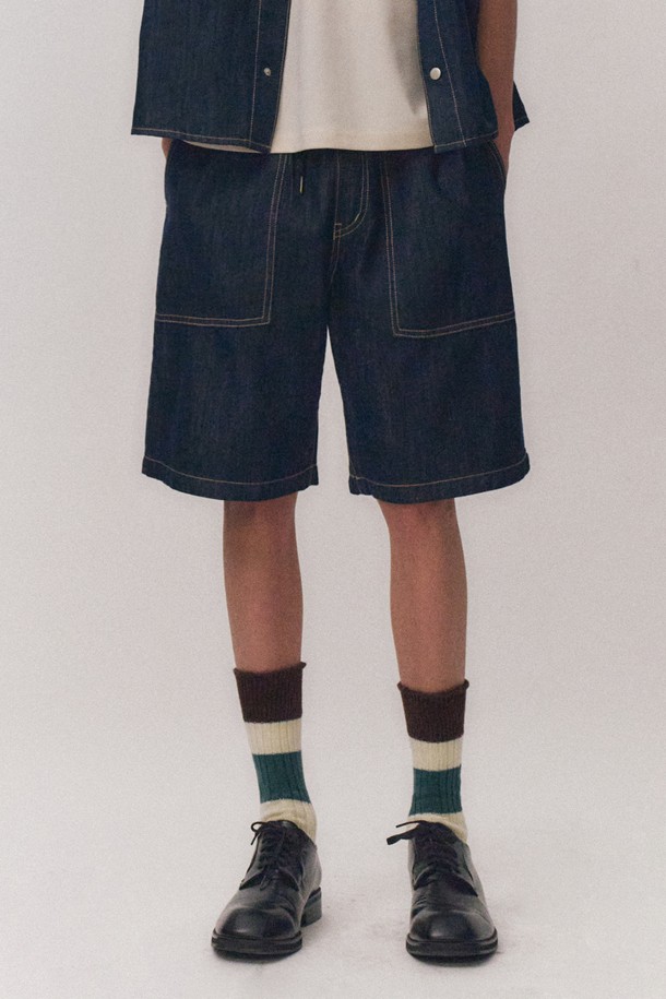 남녀공용 쿨프래쉬 풀밴딩 배색 경량 데님 버뮤다 팬츠[DK-INDIGO](UB6DH86_07)