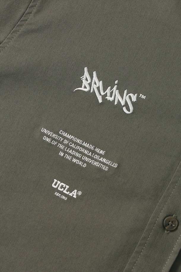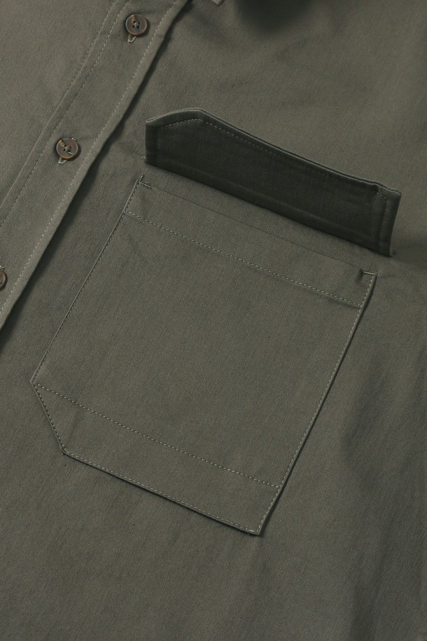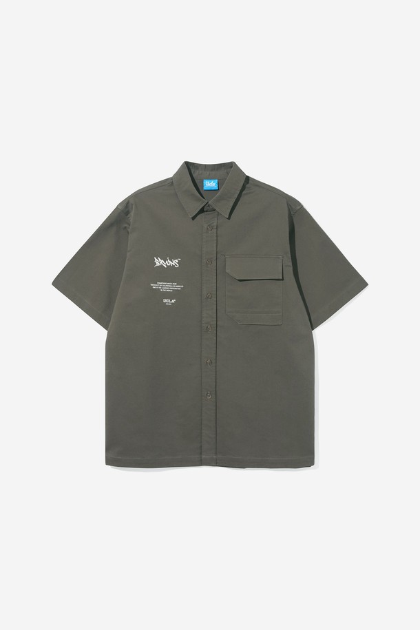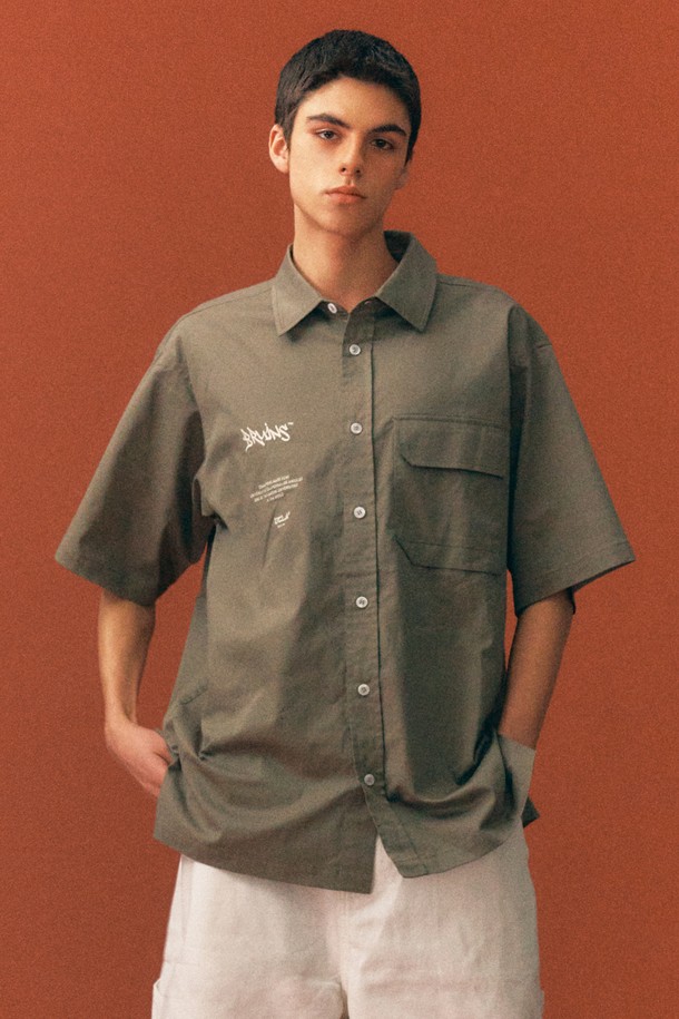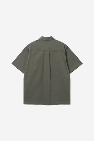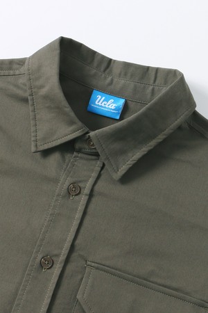 남녀공용 오버핏 코튼 혼방 트윌 반팔 셔츠[KHAKI](UB3SS1A_65)