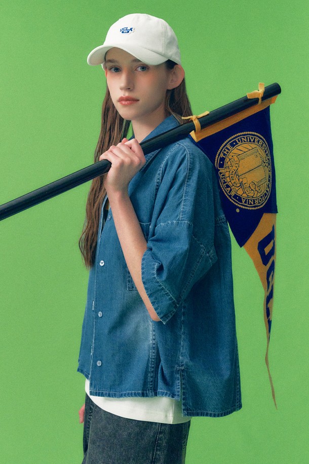 여성 오버핏 반팔 데님 셔츠[LT-INDIGO](UB4SS50_03)