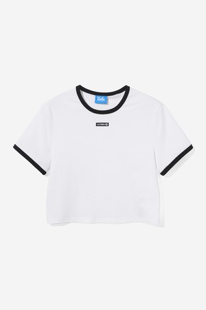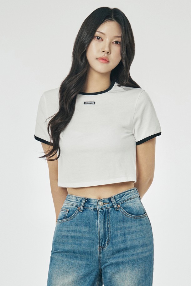 여성 크레스트 칼 로고 크롭 슬림핏 티셔츠[O-WHITE](UB6ST57_33)