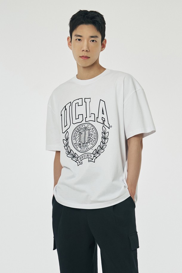 남녀공용 빅토리 뱃지 메가 오버핏 티셔츠[WHITE](UB6ST12_31)