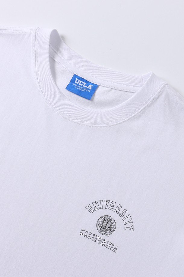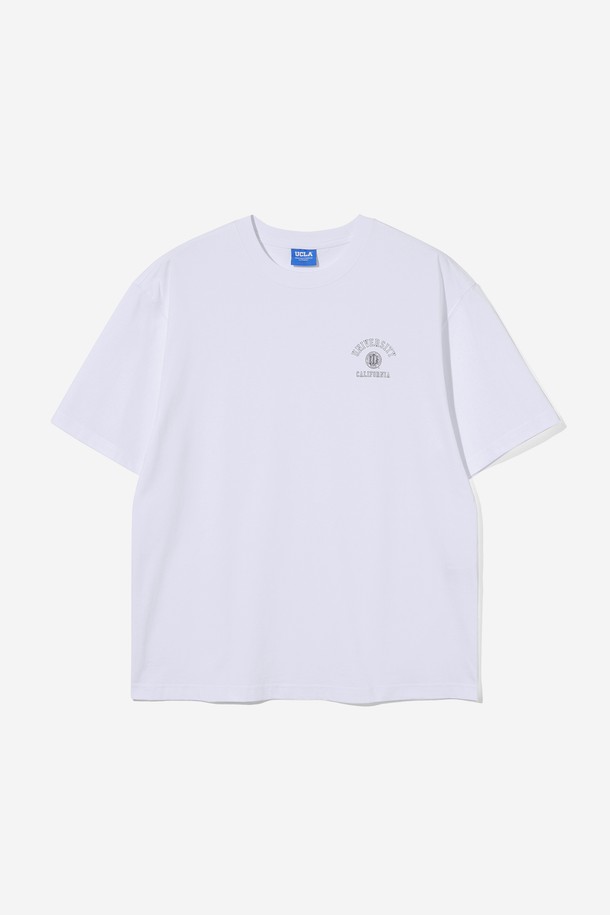 남녀공용 유니버시티 스몰 레터링 오버핏 티셔츠[WHITE](UB6ST81_31)