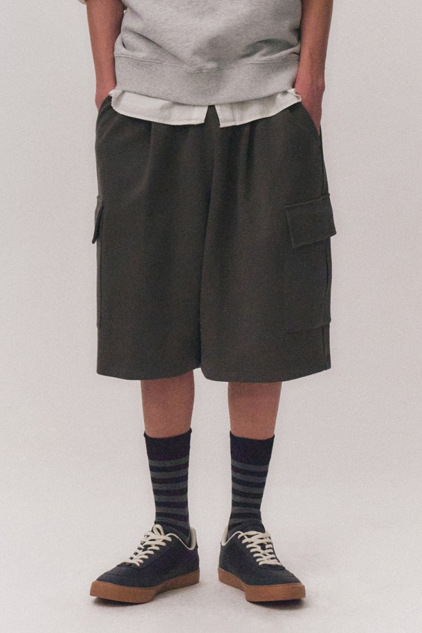 남녀공용 풀 밴딩 원턱 카고 버뮤다 팬츠[DK-GREY](UB4SP83_36)