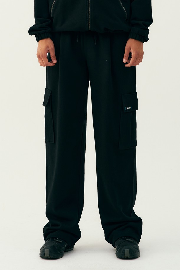 남녀공용 데일리 스몰로고 져지 오버 와이드 카고팬츠[BLACK](UB8LP38_39)