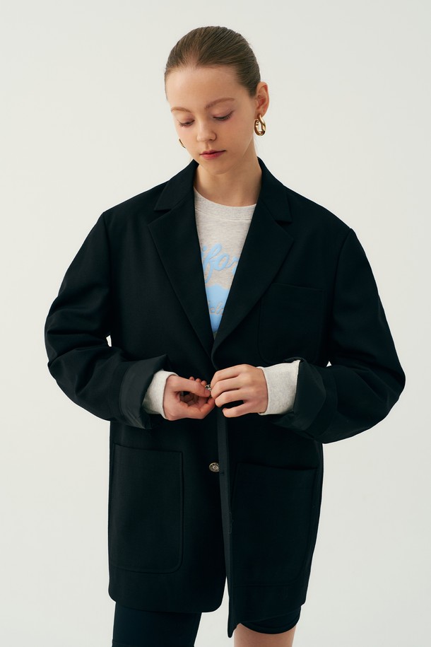남녀공용 프레피 매달리온 2버튼 블레이저[BLACK](UB9JK20_39)