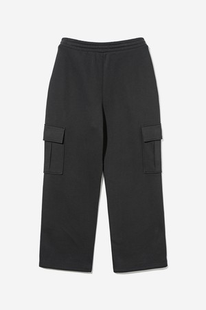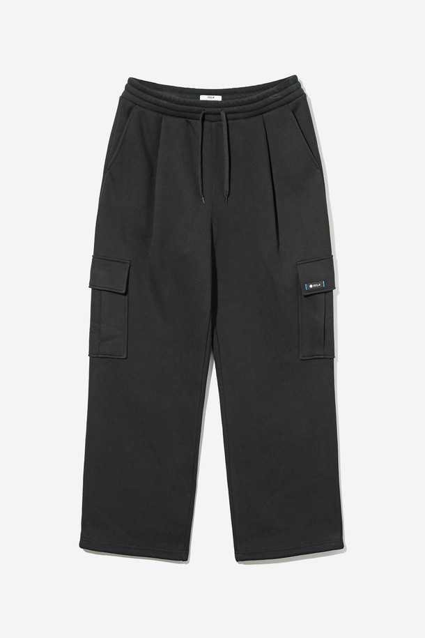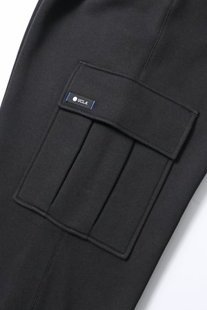 남녀공용 데일리 스몰로고 져지 오버 와이드 카고 기모 팬츠[BLACK](UBALP38_39)