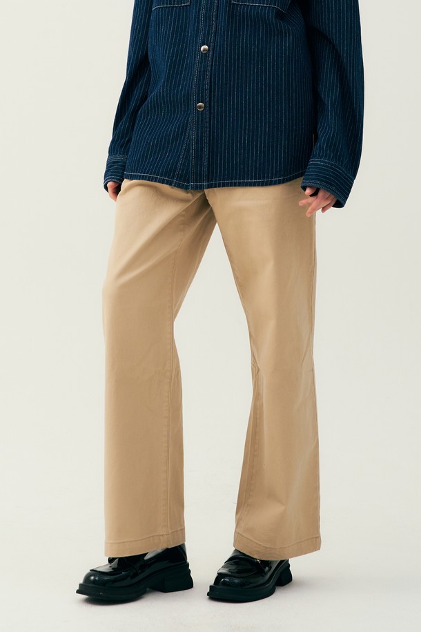남녀공용 데일리 스몰로고 우븐 와이드 팬츠[BEIGE](UB9LP22_25)