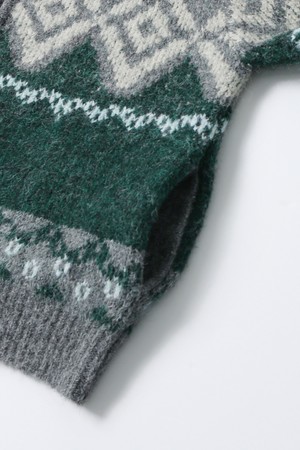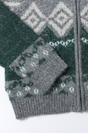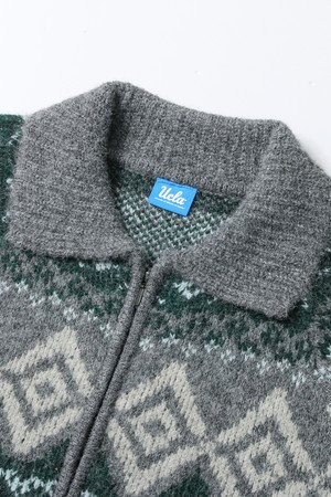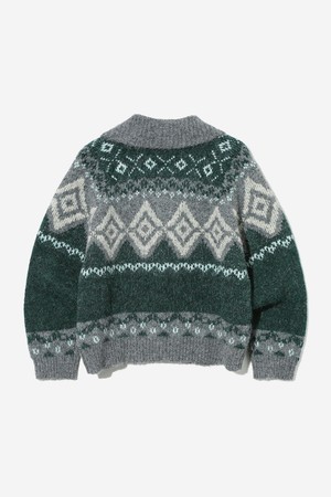 여성 노르딕 패턴 칼라넥 집업 카디건[GREEN](UBAGD50_66)
